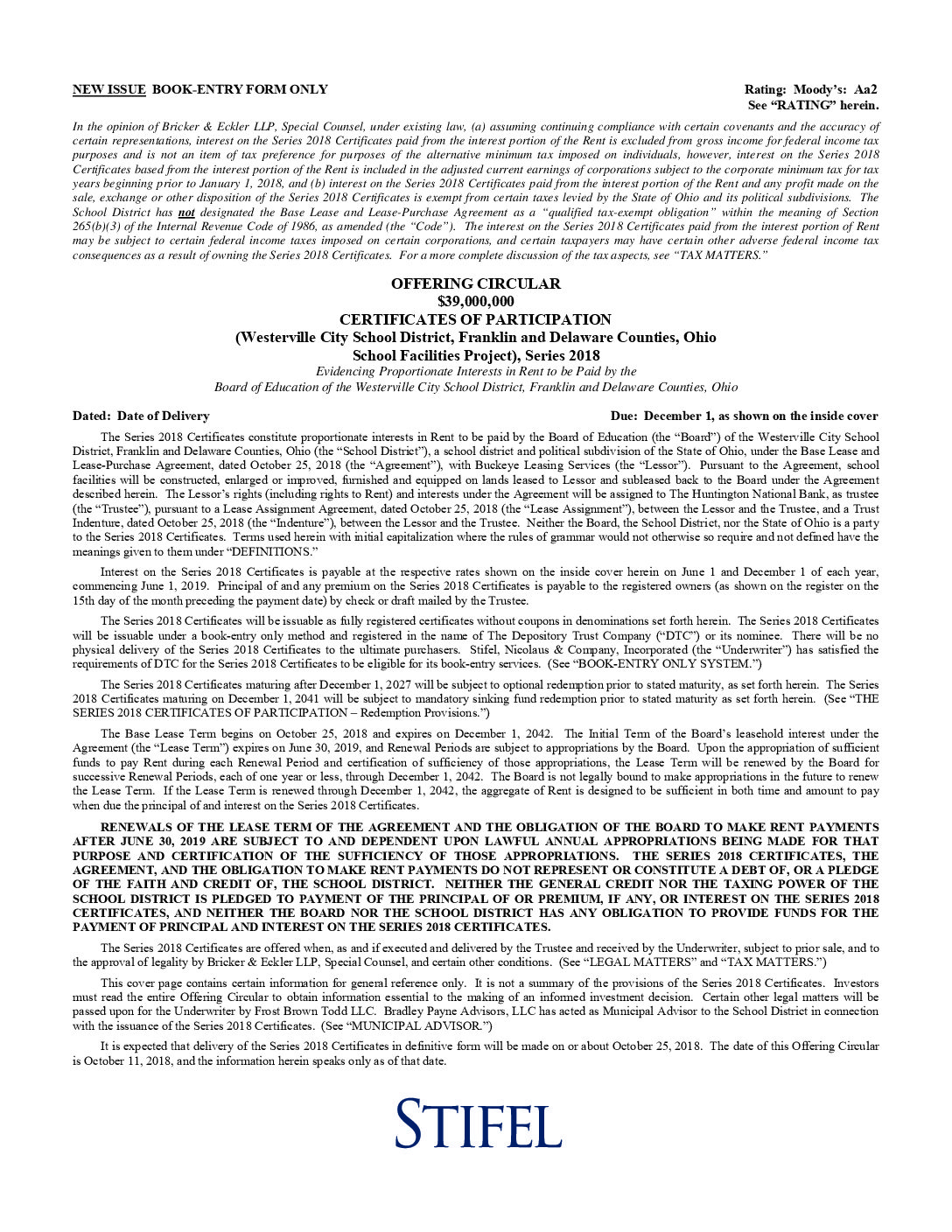 Underwriter(s) STIFEL